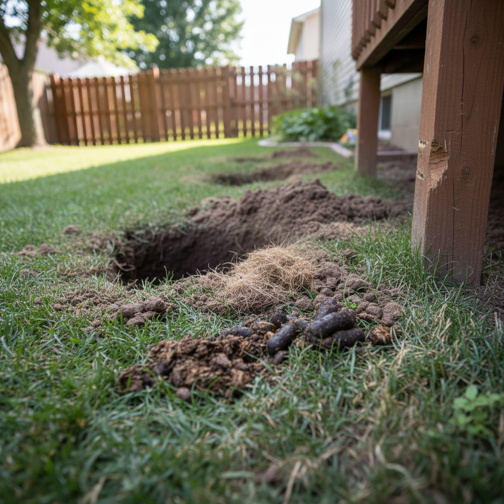 While not typically infesting homes, signs of badger activity include large, excavated burrows in yards or under structures. You might also notice disturbed soil, uprooted plants, or small holes where they have been digging for rodents or insects. Pets may exhibit unusual behavior, such as barking or agitation near potential burrow sites.