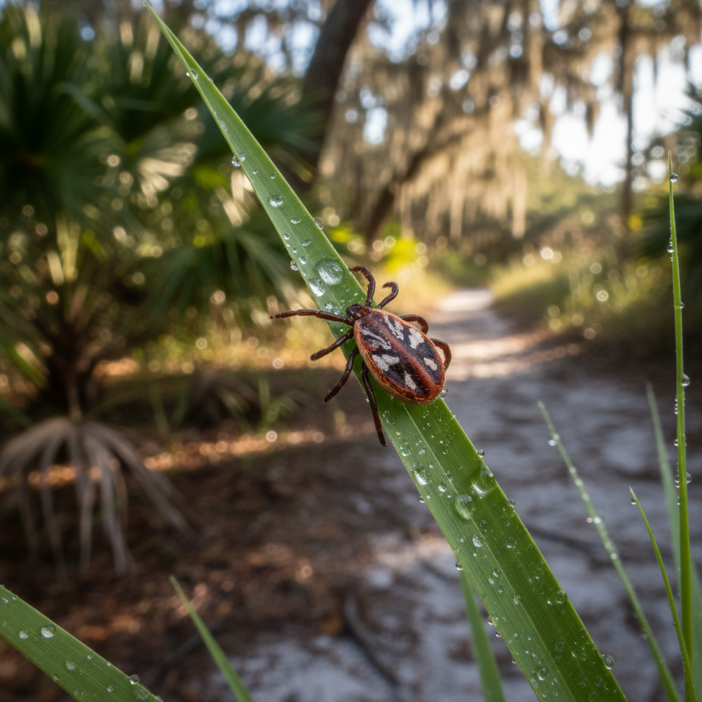The most common sign is finding ticks crawling on your clothing, pets, or skin after spending time outdoors in grassy or wooded areas around Myrtle Beach. You might also notice unexplained bites or redness on your skin. Check pets regularly, especially around the ears, neck, and between the toes, as these ticks frequently hitch rides into your home.