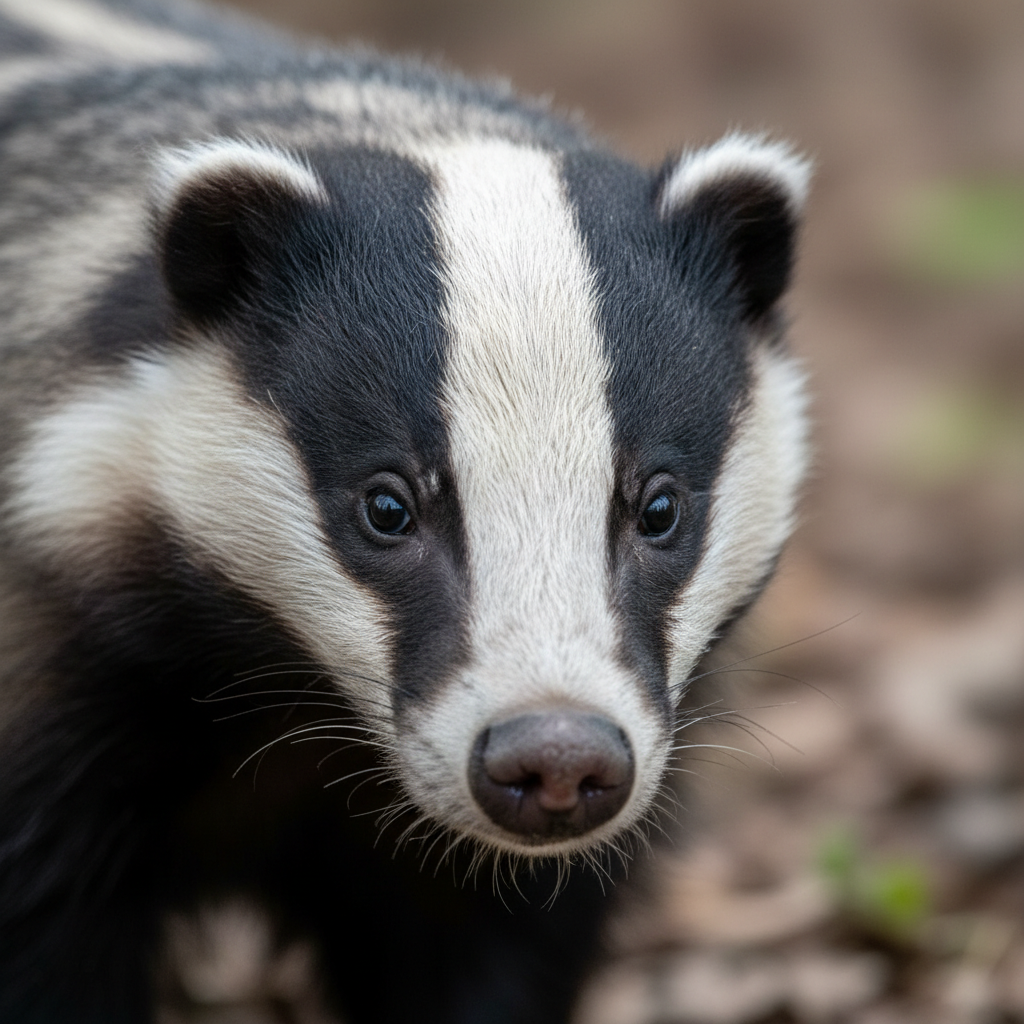 Badgers are stocky mammals with short legs, a broad body, and a distinctive black and white striped face. They possess powerful front claws used for digging and typically weigh between 11 and 25 pounds. Their fur is generally grizzled grayish, sometimes with reddish hues.