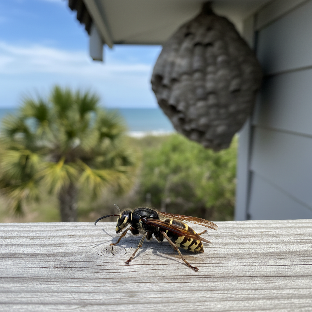 MBPC provides professional nest removal services for bald-faced hornets. Our licensed technicians are trained to safely eliminate nests, minimizing the risk of stings. Because of the danger involved, it's best to avoid DIY removal, especially in populated Grand Strand areas.