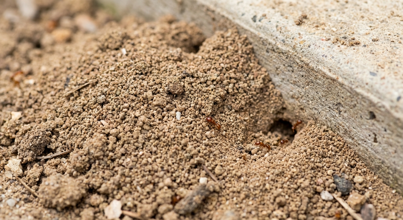 Look for trails of small, reddish-brown ants foraging for food, especially in kitchens and pantries. You may also find piles of excavated soil or debris near foundations, sidewalks, or in potted plants. Big-headed ants often establish nests in wall voids, under floors, or in decaying wood.