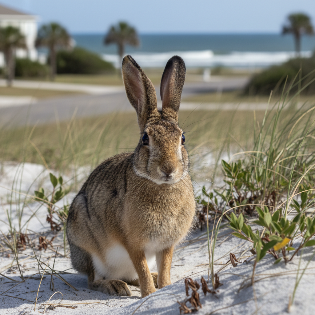 Black-tailed jackrabbits prefer open areas with sparse vegetation, which can include grassy fields, coastal scrub, and even disturbed areas near residential developments along the Grand Strand. The mild winters and abundance of food in Myrtle Beach make it a suitable habitat.