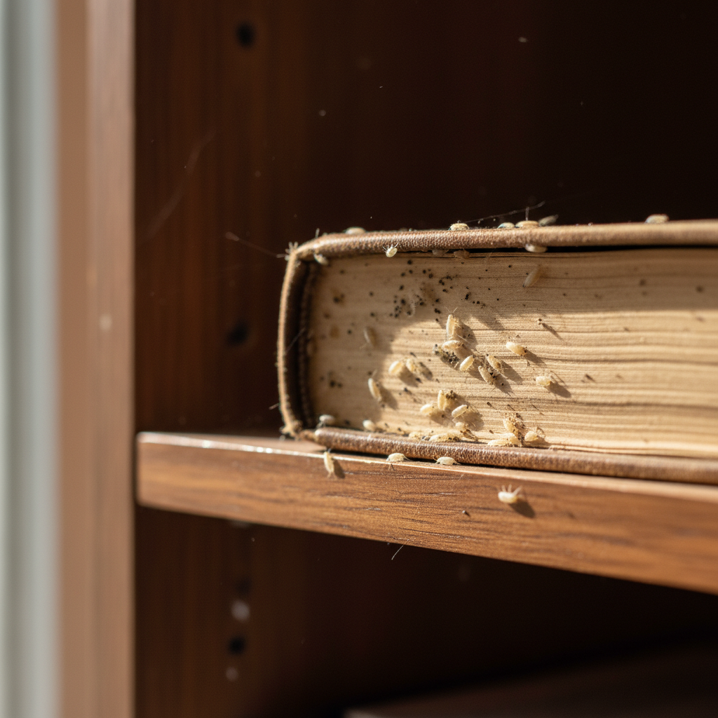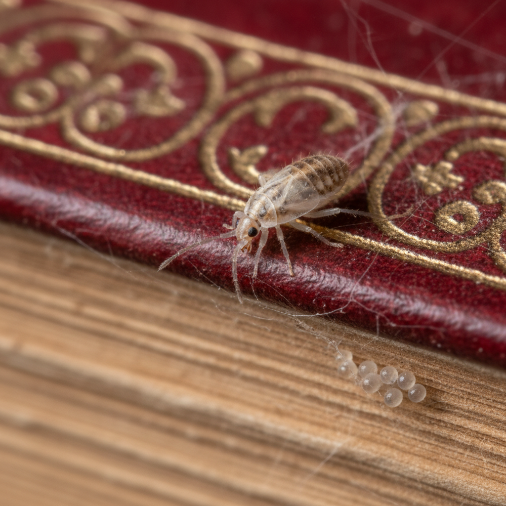 Booklice thrive in damp, undisturbed areas. Look for them in books, paper, stored food, or on moldy surfaces. You might notice them moving quickly when disturbed, or find shed skins.