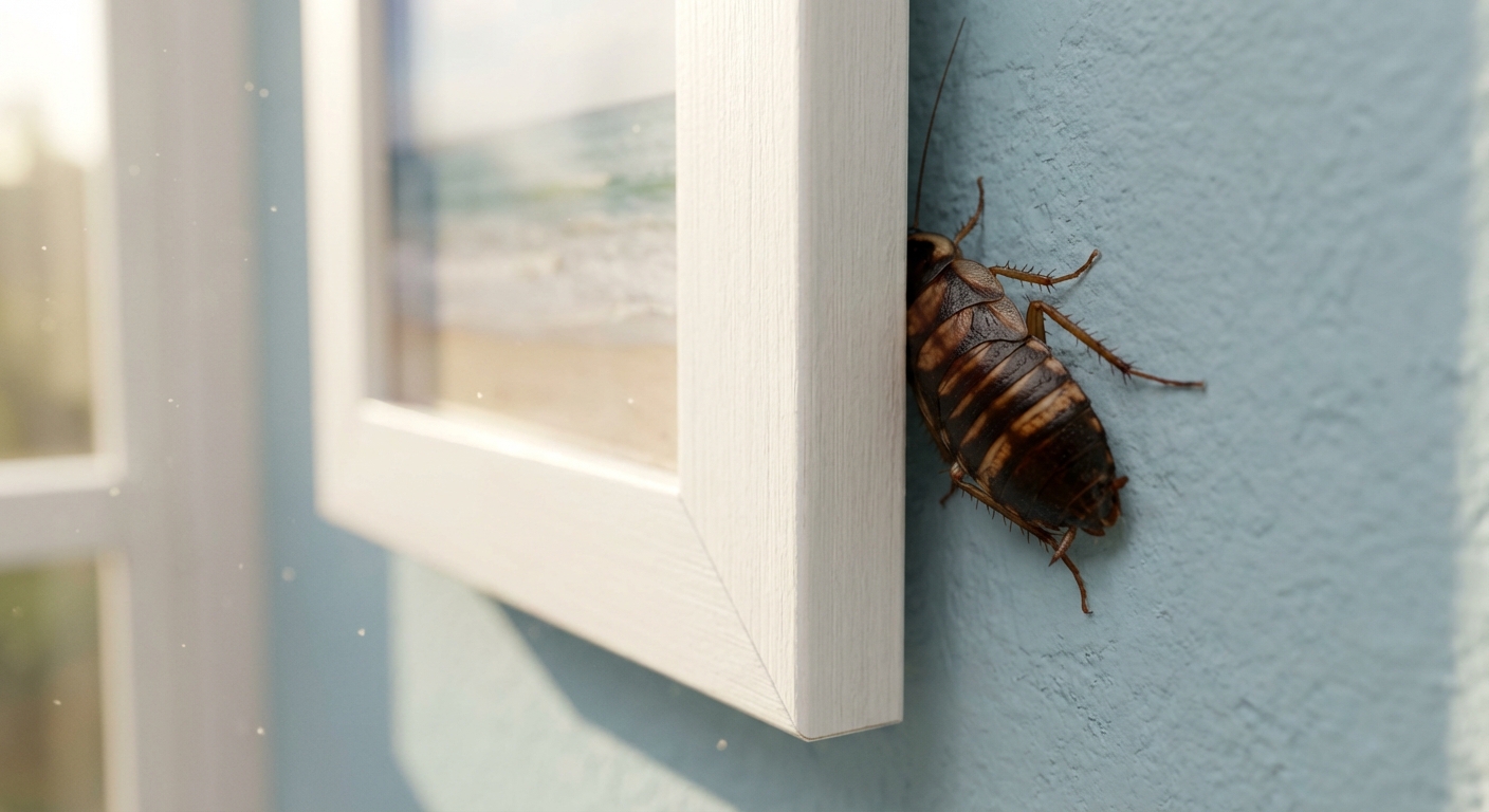 Look for fecal droppings (small, dark specks) and shed skins in hidden areas like closets, behind picture frames, and inside electronics. You may also find their tan-colored egg capsules (oothecae) attached to furniture or walls. A musty odor may also indicate a large infestation in your Myrtle Beach home.