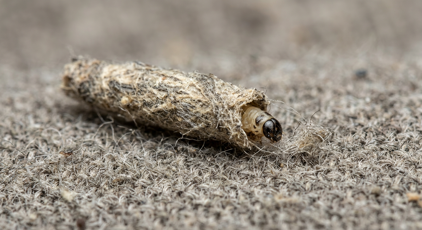 Look for small, cylindrical cases (about 1/4 to 1/2 inch long) on clothing, carpets, or upholstery. You might also notice irregular holes in fabrics, especially those made of wool, silk, or other natural fibers. Larval droppings, which resemble fine grains of sand, may also be present near infested items in your Myrtle Beach home.
