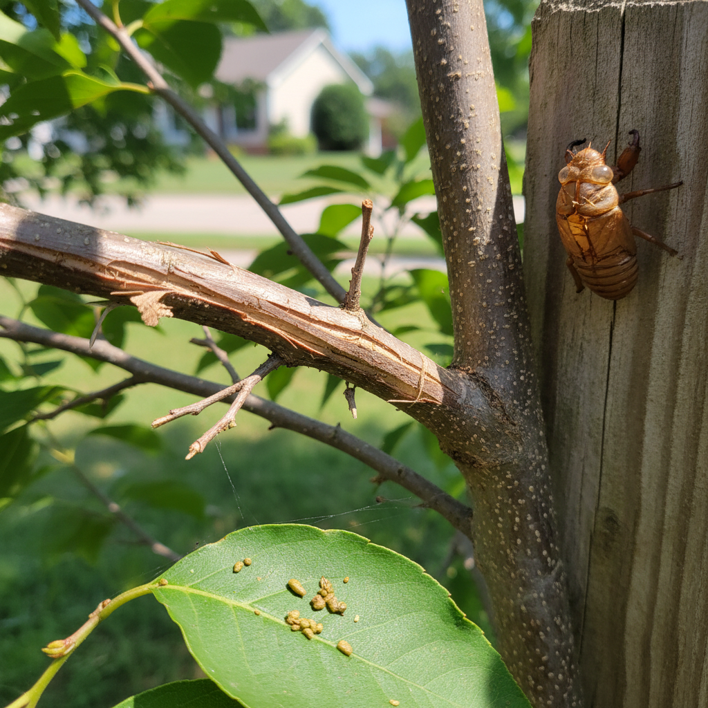 Protect young or vulnerable trees with netting or cheesecloth during cicada emergence periods to prevent egg-laying damage. Avoid planting new trees in areas known for heavy cicada activity. Raking up and disposing of fallen twigs and branches with egg-laying damage can help reduce future populations in your Myrtle Beach yard.