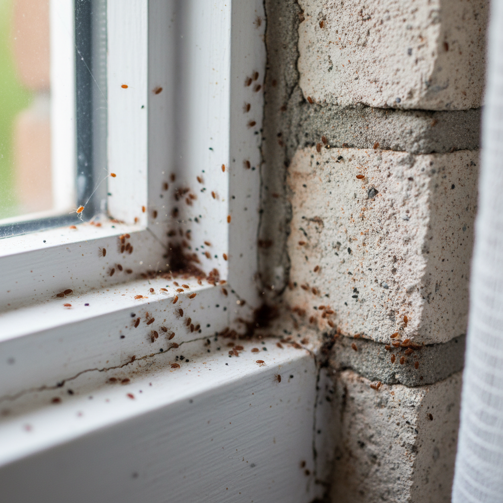 A common sign is a sudden appearance of tiny red mites crawling on exterior walls, windowsills, and even inside homes near windows. Crushing them leaves a reddish stain. You might also notice a slight reddish residue on curtains or fabrics near infested areas in your Myrtle Beach home.