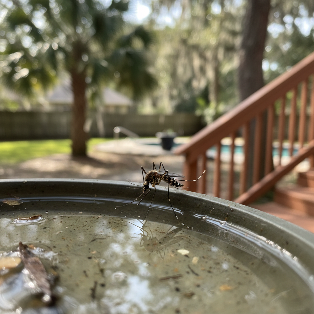 Common mosquitoes thrive in the humid subtropical climate of coastal South Carolina. They breed in standing water sources, even small ones, and are commonly found near salt marshes, tidal creeks, and residential areas with poor drainage. Adults prefer shady, sheltered areas during the day and become active at dusk and dawn.
