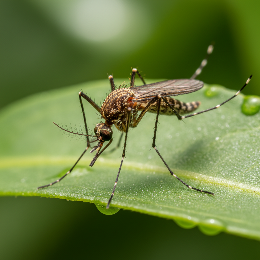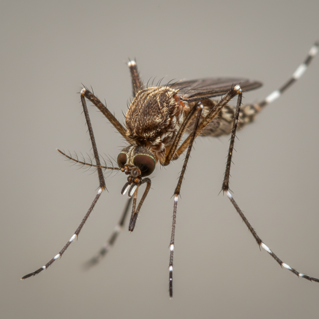 Common mosquitoes are small, delicate-looking insects with slender bodies, long legs, and scaled wings. They typically have a brown or grayish color and are about ¼ inch long. The most distinctive feature is their piercing-sucking mouthparts, used by females to feed on blood.