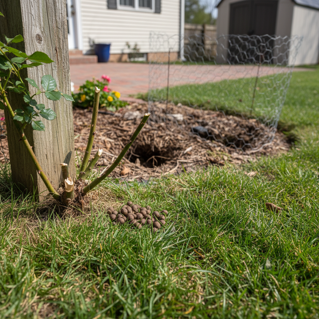Signs of eastern cottontails around your property include gnawed plants in gardens, small, round droppings, and shallow burrows in the yard. You might also notice damage to the bark of young trees or shrubs, particularly during the winter months when other food sources are scarce. Tracks in the sandy soil common in Myrtle Beach are another telltale sign.