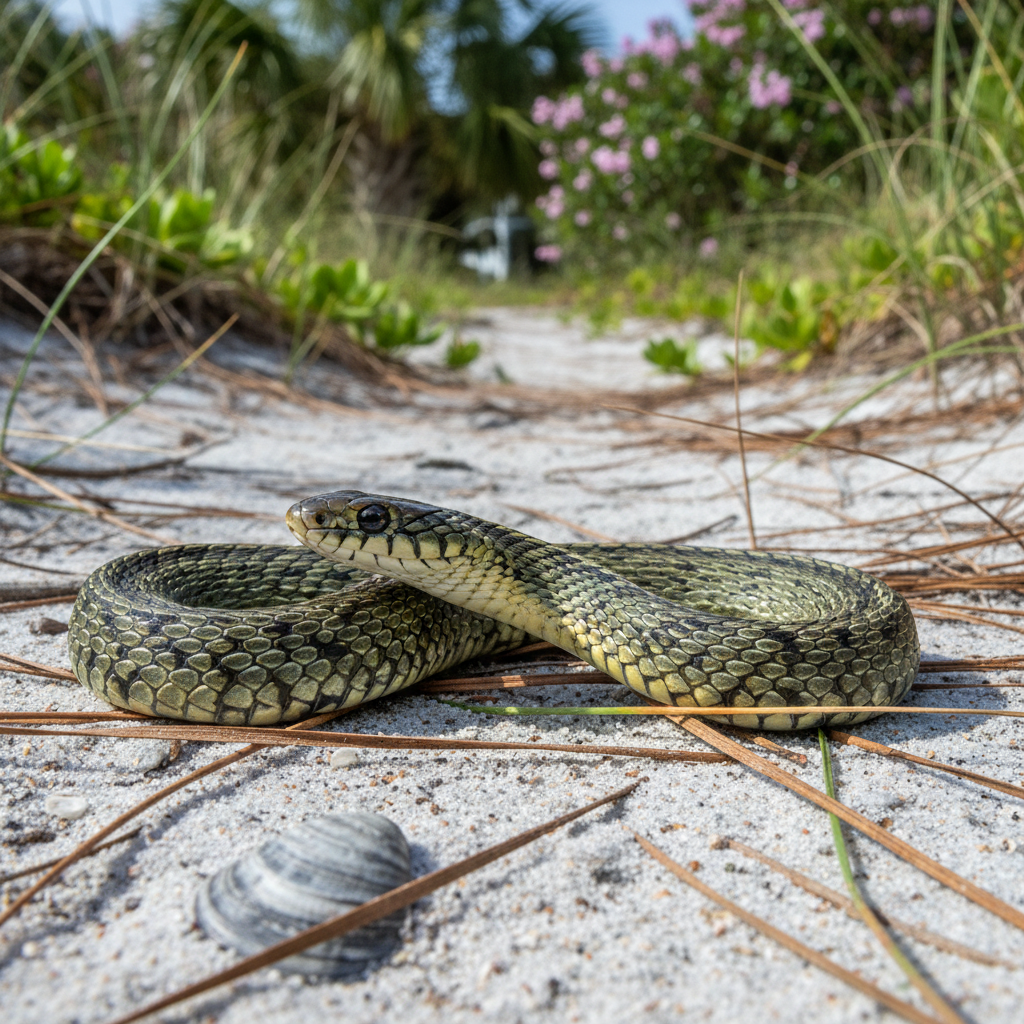 Garter snakes are common in a variety of habitats across coastal South Carolina, including residential gardens, woodlands, and wetlands. They thrive in the humid subtropical climate and are often found near water sources like ponds, creeks, and salt marshes. Their adaptability makes them a frequent sight in Myrtle Beach yards.