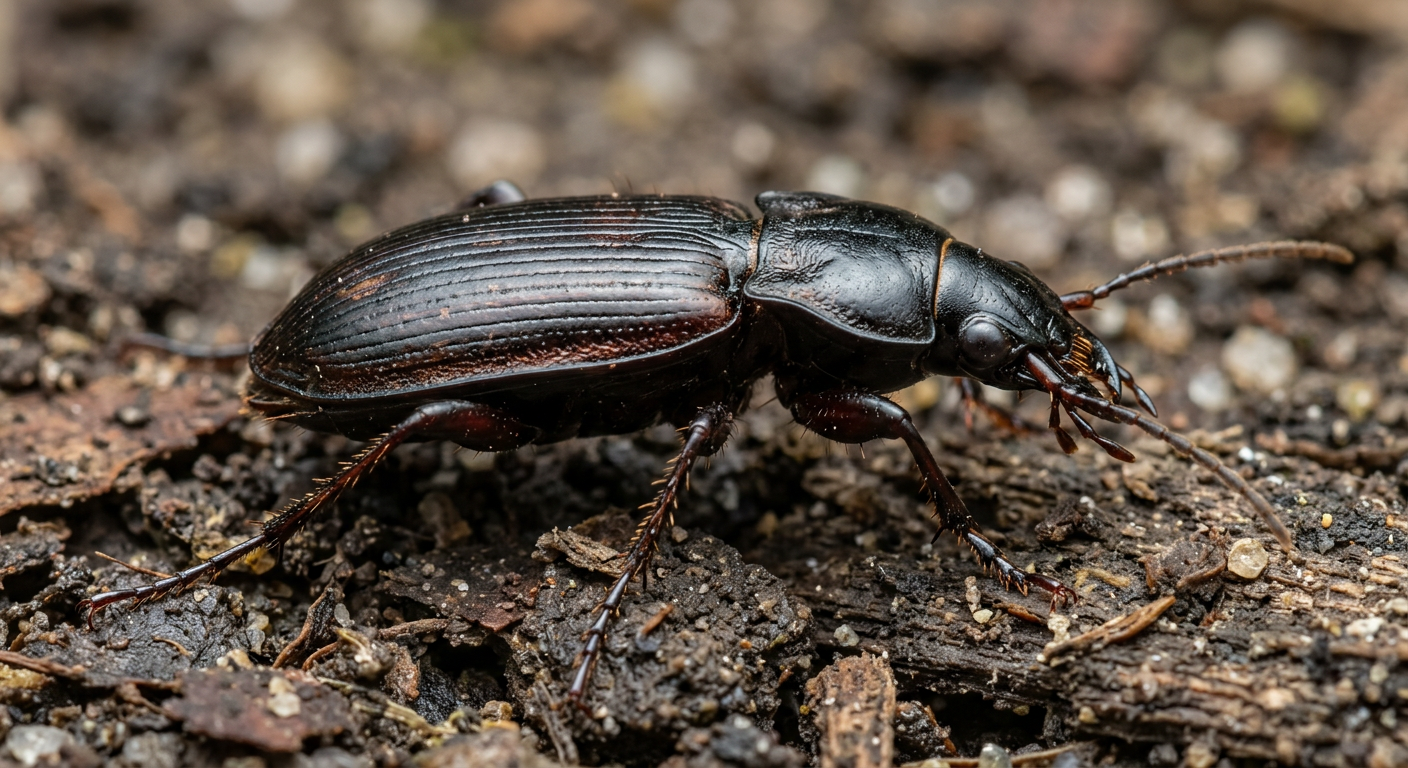 Ground beetles are generally solitary and don't infest homes. Their presence indoors usually indicates they wandered in seeking shelter. You might find them near doors, windows, or in garages, especially after heavy rain.