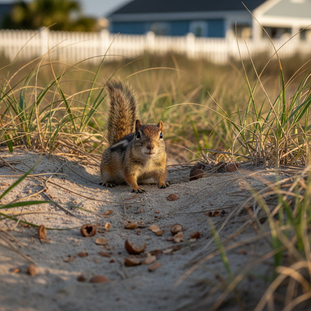 Ground squirrels prefer open areas with short vegetation and well-drained soils, often found in grassy fields, parks, and golf courses around Myrtle Beach. They thrive in the coastal SC environment due to the abundance of food sources and relatively mild winters. They create extensive burrow systems for shelter and nesting.
