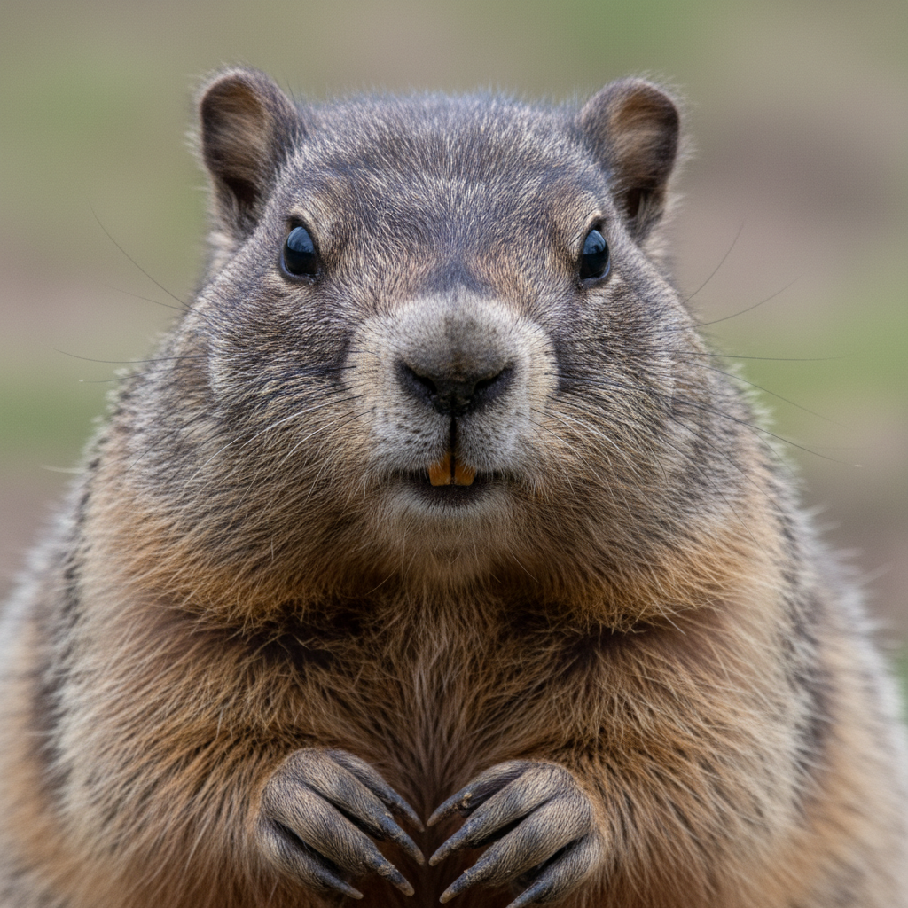 Groundhogs, also known as woodchucks, are stout rodents with a grizzled brown coat, a bushy tail, and short legs. They typically weigh between 5 and 12 pounds and have a characteristic stocky build. They also possess strong claws, ideal for digging burrows.