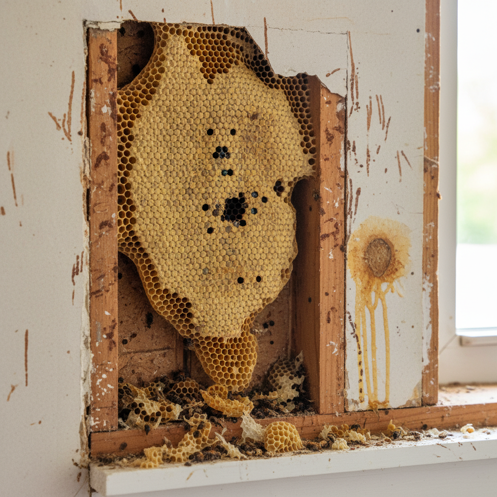 A honey bee infestation is usually signaled by the presence of a large hive or nest, often found in wall voids, chimneys, or trees. You might also notice a persistent buzzing sound or increased bee activity around your home, particularly near entry points. Large numbers of bees foraging near flowering plants on your property can also indicate a nearby colony.