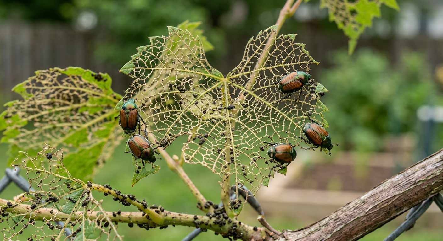 Look for skeletonized leaves, where only the veins remain after beetles have consumed the tissue between them. You might also notice large numbers of beetles actively feeding on flowers, fruits, and foliage. In lawns, grub infestations can cause brown patches as they feed on grass roots.