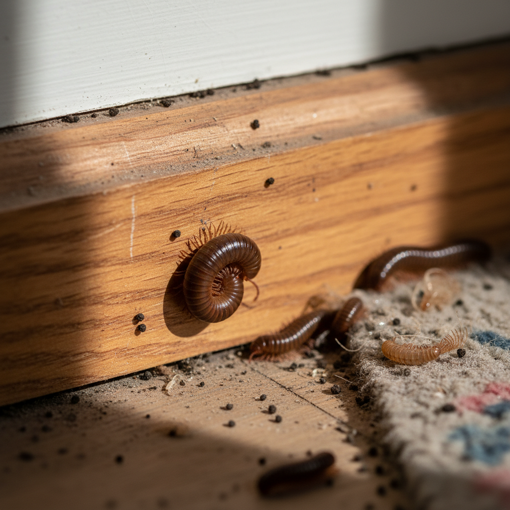The best prevention is to reduce moisture and remove harborage areas around your home's foundation. Seal cracks, clear away leaves and mulch, and ensure proper drainage. MBPC can also provide perimeter treatments to create a barrier against millipede entry.