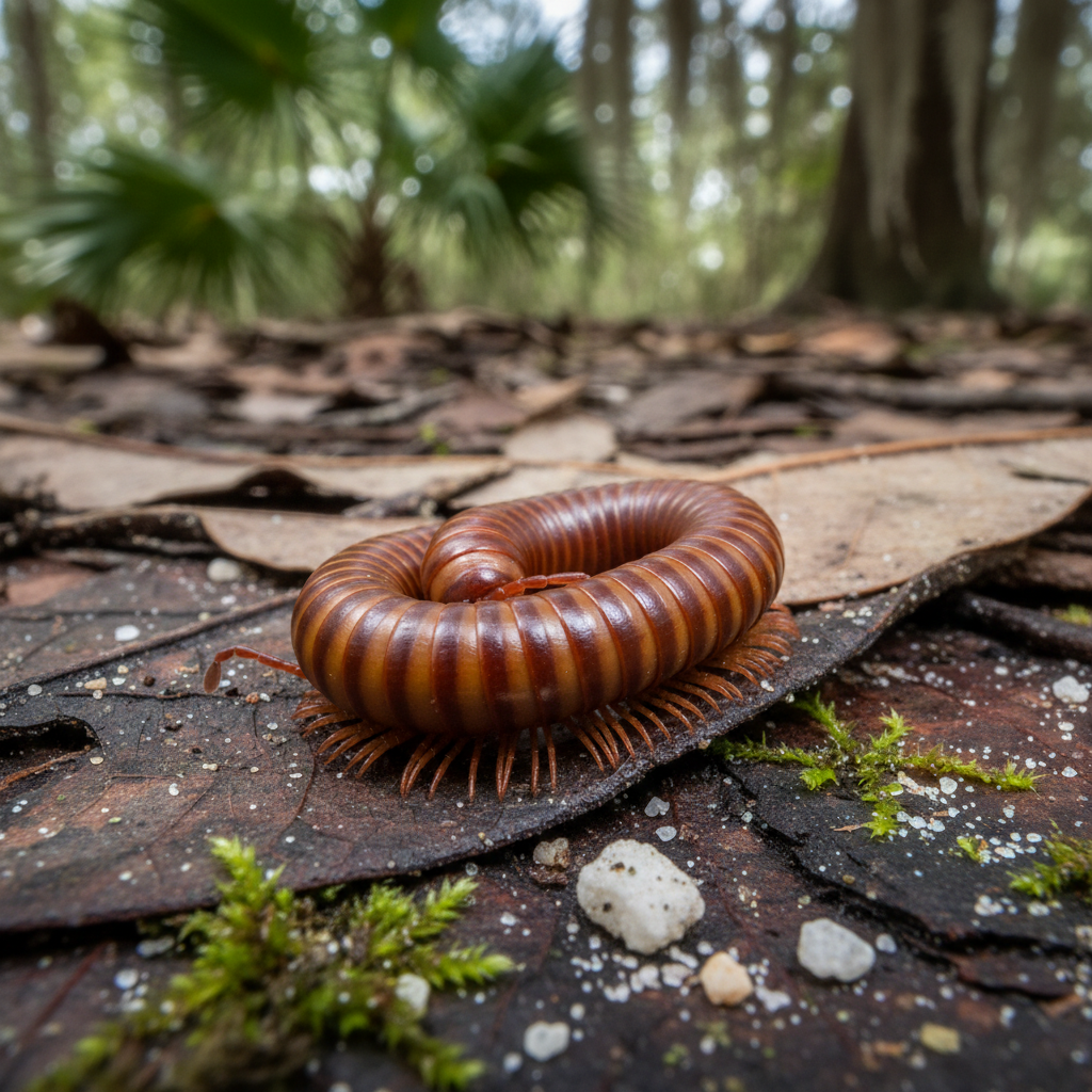 Millipedes thrive in the moist, humid environments common in coastal South Carolina. They are frequently found in gardens, under mulch, leaf litter, and decaying vegetation. The sandy soils and warm climate of Myrtle Beach provide ideal conditions for these myriapods to flourish.