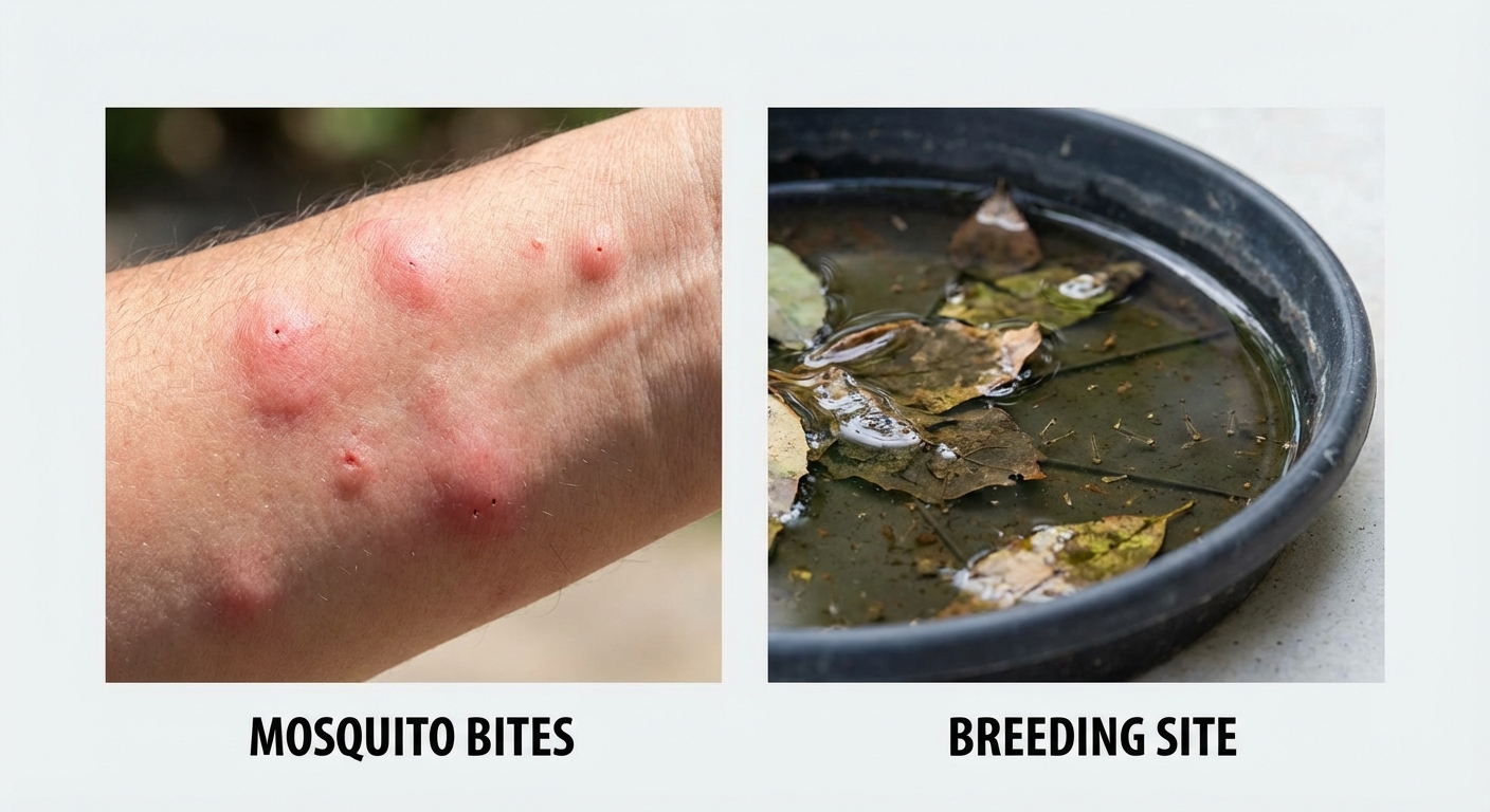 Persistent mosquito bites, especially during dawn and dusk hours, are the primary sign of a localized population. Check your property for standing water — mosquitoes can breed in as little as a bottle cap of stagnant water. Look for larvae (tiny wriggling organisms) in birdbaths, clogged gutters, flower pot saucers, and any container holding water for more than a few days. Asian tiger mosquitoes also bite aggressively during daylight hours.