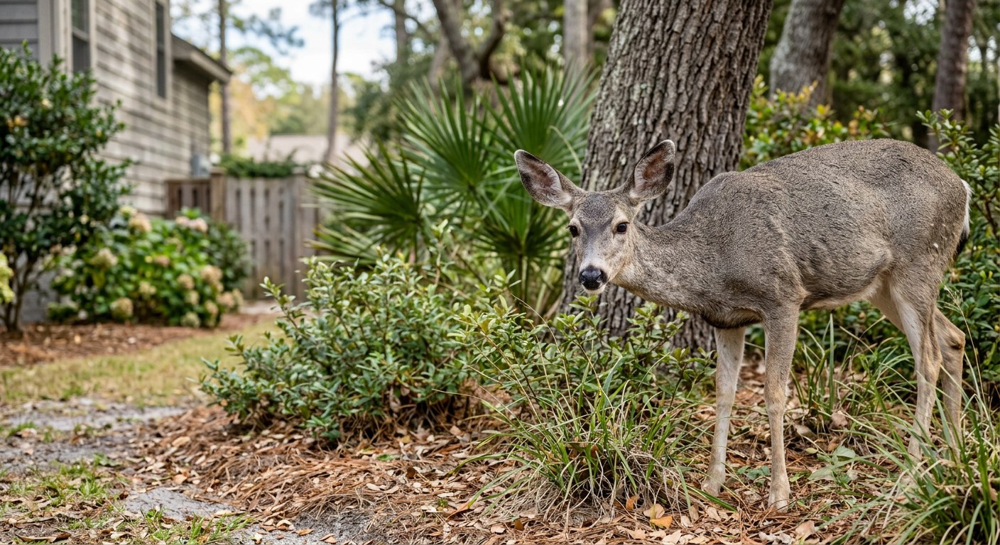 Fencing, netting, and deer-resistant plants are effective deterrents. Contact local Myrtle Beach nurseries for advice on deer-resistant varieties that thrive in our climate.