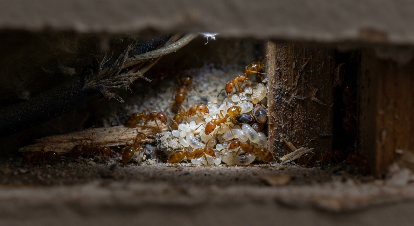 Pharaoh ants thrive in warm, humid environments like those found along the South Carolina coast. They can nest in almost any concealed space, from wall voids to furniture, making them a common indoor pest in Myrtle Beach homes and businesses. They prefer areas near food and water sources.