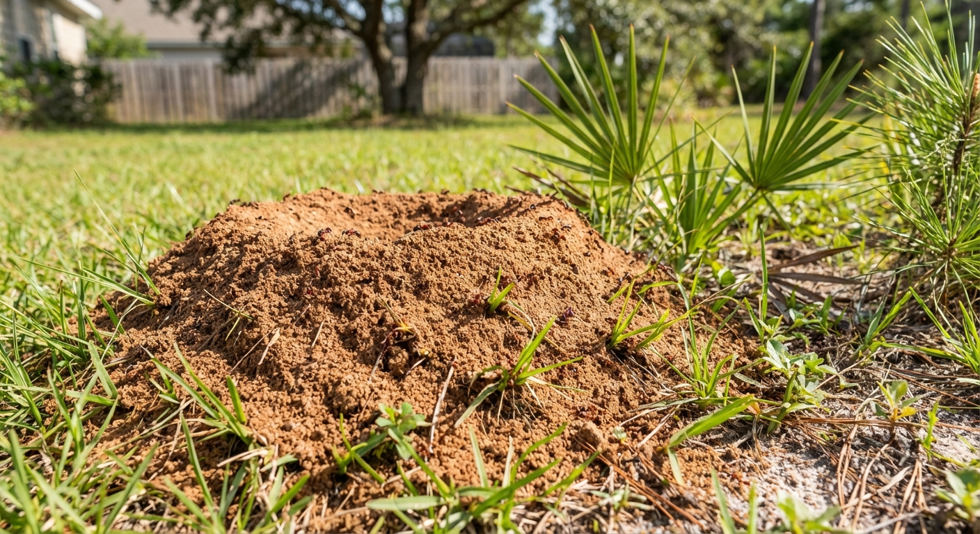 Look for mounds of loose soil that can reach up to 18 inches in diameter, particularly in sunny areas of your lawn or garden. These mounds often appear after rainfall. Be cautious around these mounds, as the ants will swarm out and sting if disturbed, especially around your Myrtle Beach property.