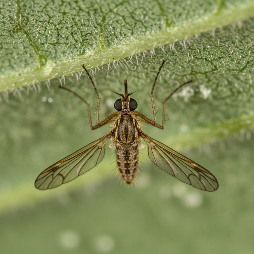 Sand flies are tiny, biting flies, typically only 1-3 mm long, with a characteristic humped thorax and hairy wings. They are pale yellow to brown and possess piercing-sucking mouthparts used by females to feed on blood. Unlike mosquitoes, they are weak fliers and tend to hop or jump rather than fly long distances.