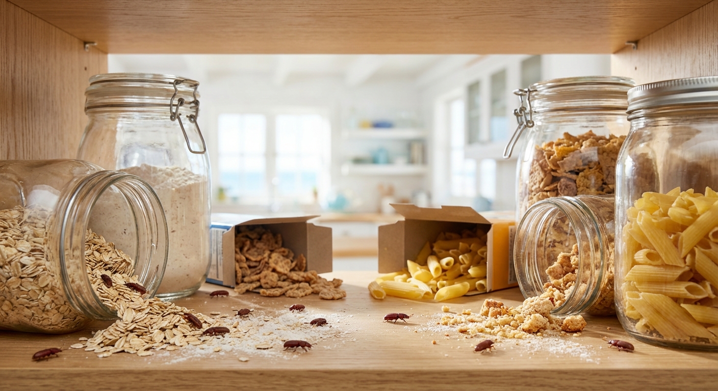 MBPC recommends identifying and discarding infested food items first. Thoroughly clean pantry shelves and vacuum cracks and crevices. For persistent infestations, contact our SC-licensed technicians for targeted treatment and prevention strategies in your Grand Strand home.