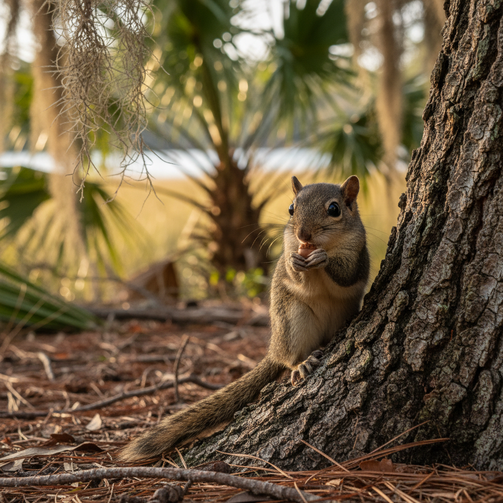 Southern flying squirrels are common in the wooded areas of coastal South Carolina, including Myrtle Beach. They prefer mature forests with abundant trees for nesting and foraging. They often nest in tree cavities, abandoned bird nests, or man-made structures like attics, taking advantage of the warm, humid climate.