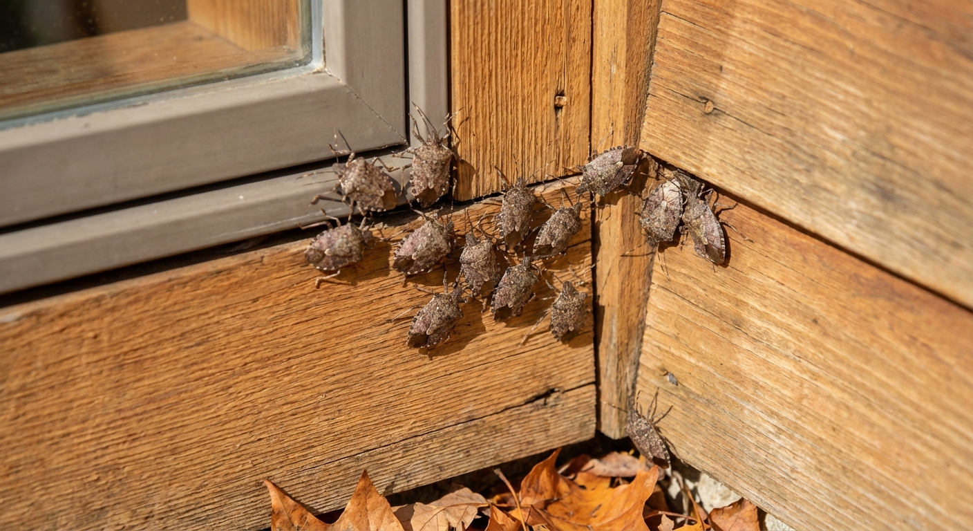 Stink bugs become highly visible in fall when they seek warm structures for overwintering. You may notice them clustering on sun-warmed exterior walls, particularly south and west-facing surfaces. They enter through gaps around windows, doors, siding, and utility penetrations, congregating in attics, wall voids, and around window frames. On warm winter days, overwintering bugs become active inside the home and are found on windows and walls.