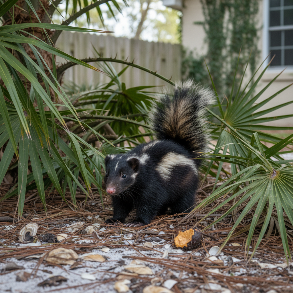 Secure garbage cans with tight-fitting lids to prevent skunks from accessing food. Eliminate potential denning sites by sealing openings under porches and decks. Consider installing motion-activated lights to deter skunks from entering your yard in Myrtle Beach.