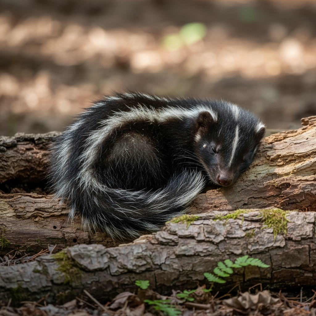 Striped skunks are adaptable and found throughout coastal South Carolina, including suburban areas of Myrtle Beach. They prefer areas with readily available food sources like insects, rodents, and garbage. They often den in underground burrows, hollow logs, or under man-made structures.