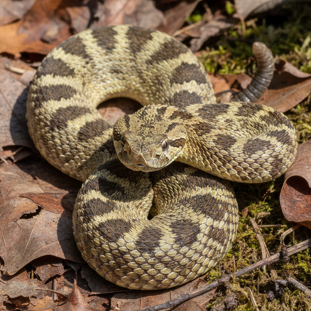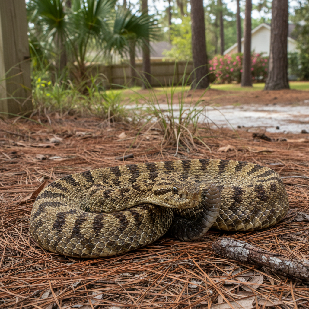 Timber rattlesnakes prefer wooded areas, rocky hillsides, and bottomland forests, often near streams or wetlands. In coastal South Carolina, they may be found in maritime forests and near marshes. They thrive in the humid subtropical climate and can be found near residential areas bordering these habitats.