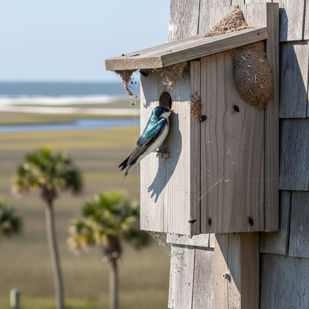 Tree Swallows are attracted to open areas with abundant insects and suitable nesting sites, such as birdhouses or cavities. Your Myrtle Beach property may provide ideal habitat if it is near water and has available nesting locations.