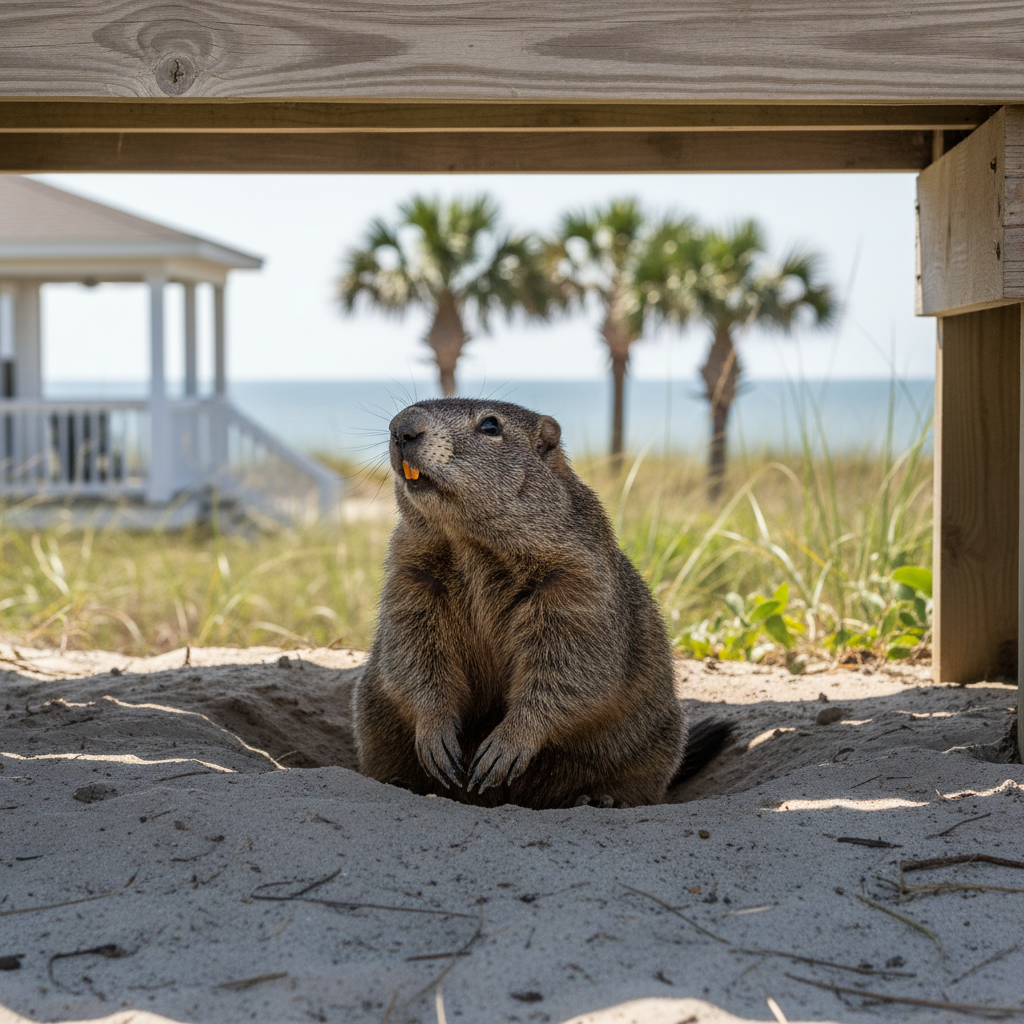 Woodchuck burrows can be extensive, often reaching depths of 2-5 feet and extending horizontally for up to 50 feet. They typically have multiple entrances and chambers. This makes them a potential threat to building foundations in Myrtle Beach.